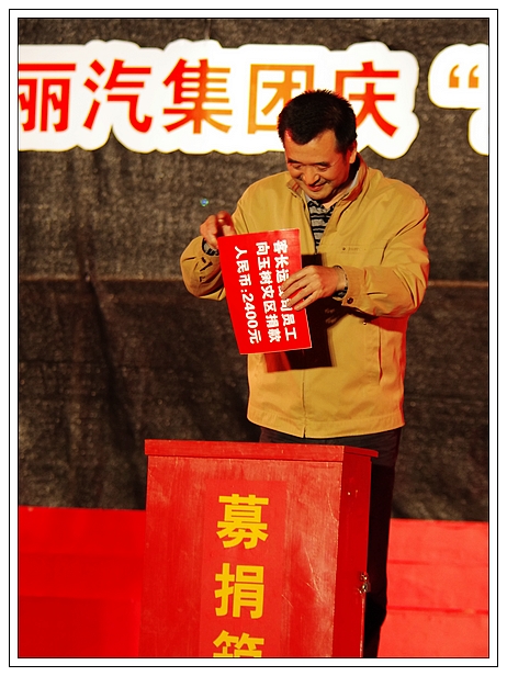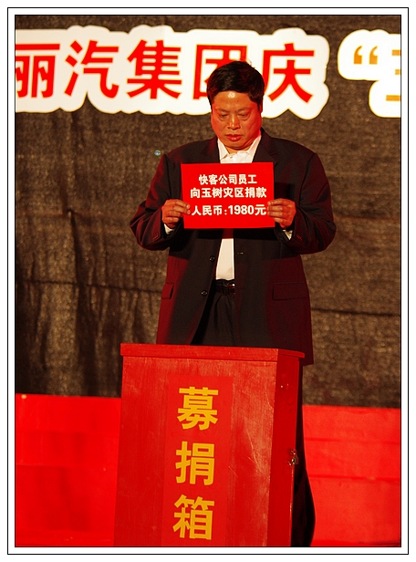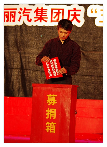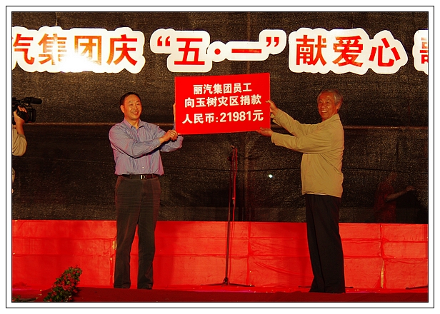 演唱會(huì)上,麗汽集團(tuán)員工為玉樹地震災(zāi)區(qū)進(jìn)行了捐款,所募集的21981元善款轉(zhuǎn)交市慈善總會(huì)。
