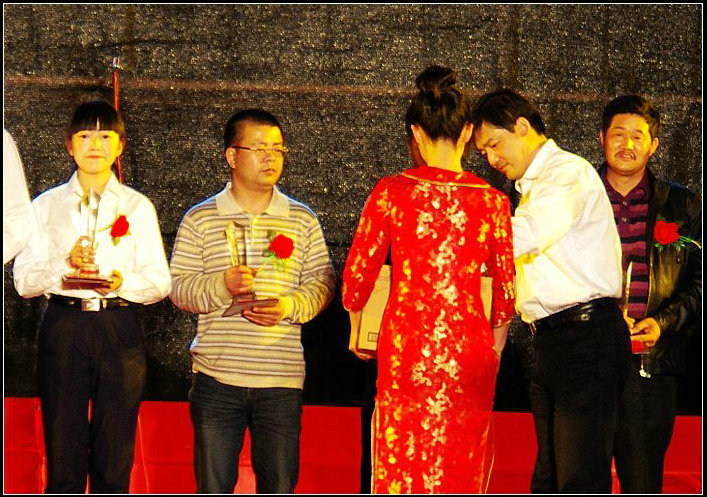 集團(tuán)公司總經(jīng)理虞大貴為演唱會(huì)二等獎(jiǎng)單位頒獎(jiǎng)