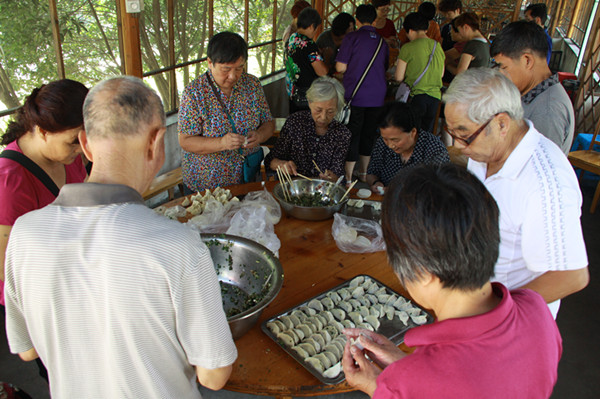 此次活動共有120多名體協(xié)會員參加,大家都想借此機(jī)會和大自然來個親密接觸,體協(xié)委員利用休息時間為大家采購了豐富美味的食物。利用新世紀(jì)綠草地依山伴水的地理資源優(yōu)勢,在秋日和煦的陽光下,在風(fēng)景秀麗的南明湖邊,我們老年人在綠草地上展現(xiàn)了 “年輕人”舞步,跳著佳木斯健身操動作,擺動雙臂,邁開雙腳,走出健康,走出幸福。當(dāng)走進(jìn)餐廳看見桌子上擺好的餃子皮和餃子餡,老同志們便紛紛摩拳擦掌,躍躍欲試。他們各自分工后便熱火朝天的忙起來,現(xiàn)場笑聲不斷。