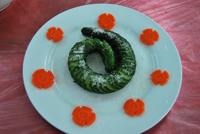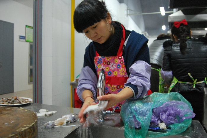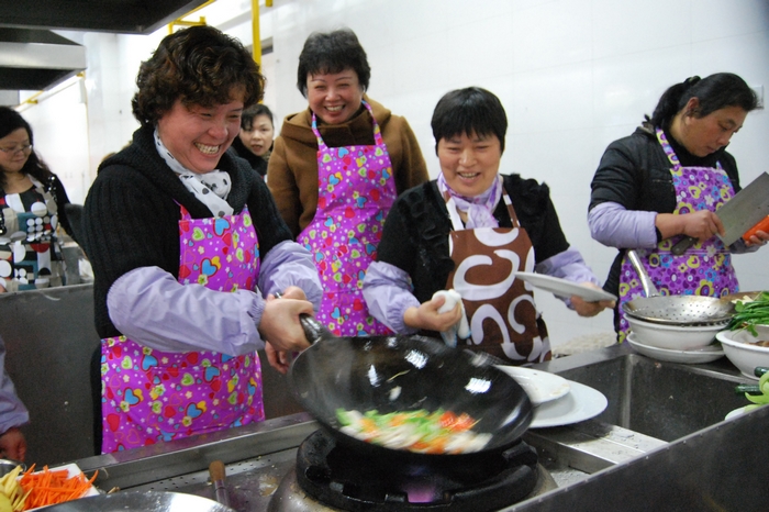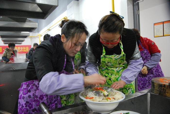 今年的女工廚藝大比拼一共吸引了集團(tuán)公司各單位和離退委的12支隊(duì)伍參加,5人一組,5個(gè)女工在組里各司其職,分為洗菜、切菜、烹飪、輔助等崗位。按照規(guī)定,每組必須根據(jù)組委會(huì)提供的原材料,在規(guī)定的時(shí)間內(nèi),制作出14道菜。