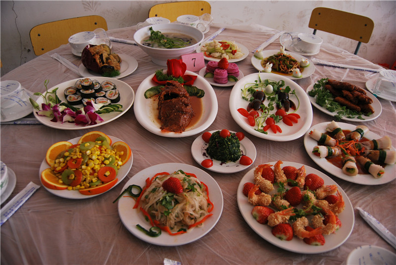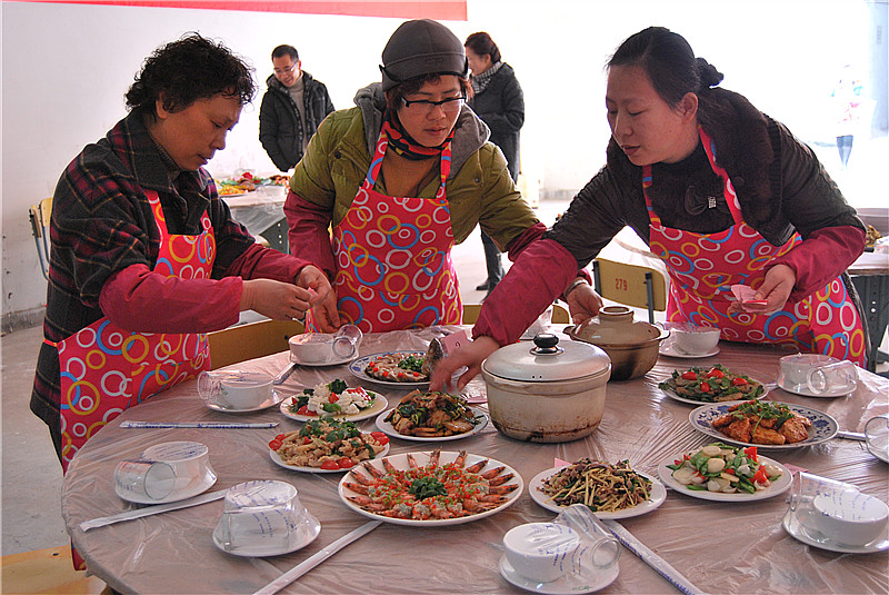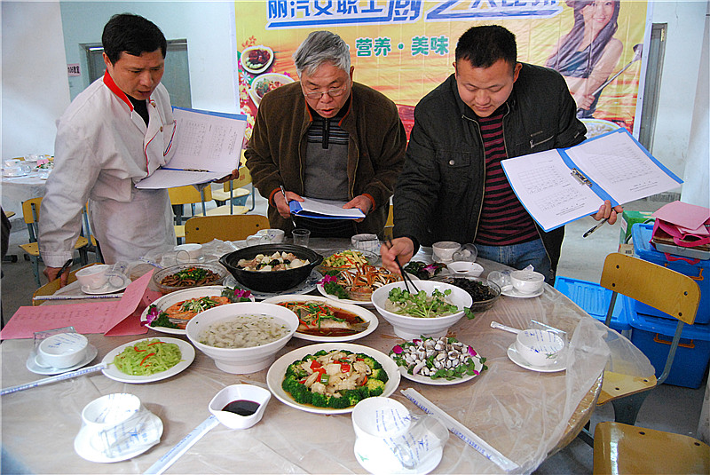 爆炒豬肝、豆腐丸子、蒜蓉大蝦……一道道誘人的家常菜端出廚房,可以看出大家伙對今天的比賽還是下了一番功夫了。由山海實訓(xùn)基地的烹飪老師組成的評委組綜合對各組燒制的菜肴的色、香、味、型,進(jìn)行打分,并對每一道菜品進(jìn)行了點評??炜头止?、物流公司聯(lián)隊和技術(shù)學(xué)校、南明賓館聯(lián)隊分獲一、二等獎。