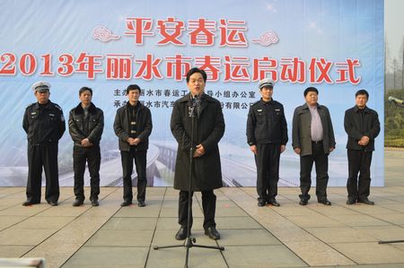 1月25日早上8:45分,“2013年麗水市平安春運(yùn)啟動儀式”在西站舉行。麗水市副市長葛學(xué)斌、市交通運(yùn)輸局局長葉沙平、副局長沈利文、集團(tuán)公司黨委書記、董事長陳建敏、總經(jīng)理薛和有,以及市公安局交警支隊(duì)、高速交警麗水支隊(duì)、市公路局路政支隊(duì)、市運(yùn)管運(yùn)政支隊(duì)和集團(tuán)公司相關(guān)單位人員出席了啟動儀式。儀式由麗水市政府副秘書長姚志強(qiáng)主持。葛學(xué)斌副市長、春運(yùn)領(lǐng)導(dǎo)小組組長宣布2013年春運(yùn)全面啟動。
