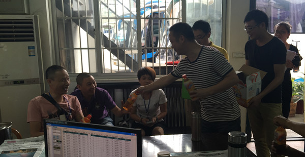 梁巍經理為在調度室休息的駕駛員和乘務員送上清涼。
