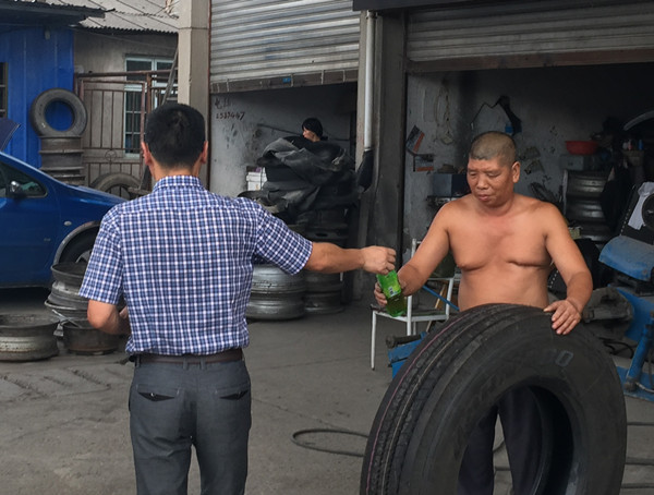 王斌副經理為車間的修理工送上清涼,修理工接過后連說:“謝謝領導關心?!?/p>