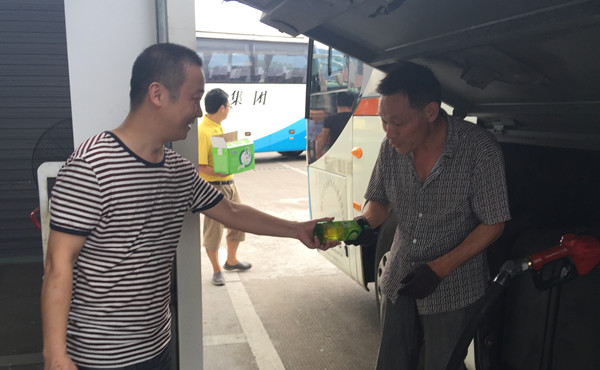 梁巍經理為即將發(fā)車的駕駛員送去清涼。