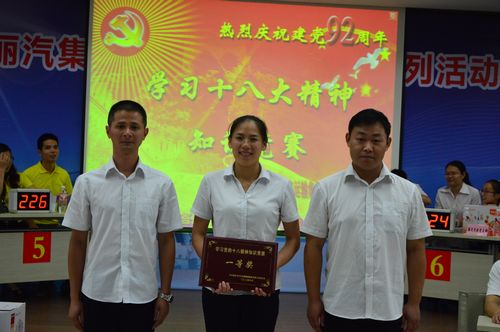 本次學(xué)習(xí)十八大精神知識競賽,共有來自集團(tuán)公司機(jī)關(guān)和下屬基層黨支部的10支代表隊(duì)參賽。經(jīng)過緊張激烈的角逐,客運(yùn)西站黨支部代表隊(duì)以238分獲得一等獎;機(jī)關(guān)黨支部代表隊(duì)和旅游集散中心黨支部代表隊(duì)獲得二等獎;南明物流黨支部代表隊(duì)、客運(yùn)東站黨支部代表隊(duì)和檢測站黨支部代表隊(duì)獲得三等獎,其他黨支部代表隊(duì)獲優(yōu)勝獎。