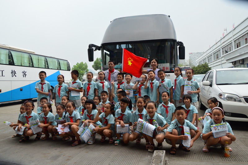在客運西站中廳里,面對模范司機吳斌的宣傳事跡圖片,小同學們不由的齊聲朗讀了起來,心里充滿了崇敬之情。在見到“最美浙江人”、“模范司機”吳斌后,小學生們更是高興的為吳斌叔叔戴上了紅領巾、獻上了美麗的鮮花。吳斌叔叔也親切的與小朋友們進行了交談,并告訴他們出行一定要注意安全,要自覺遵守交通法規(guī)。
