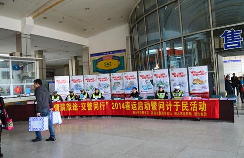 活動(dòng)現(xiàn)場(chǎng)設(shè)立了咨詢臺(tái),交警部門通過發(fā)放《駕駛?cè)舜哼\(yùn)安全手冊(cè)》、《兒童交通知識(shí)畫冊(cè)》、《駕駛?cè)伺嘤?xùn)教程》等交通安全書籍和宣傳畫冊(cè),向廣大旅客們進(jìn)行春運(yùn)交通安全宣傳。此外,還向旅客們派送印有道路安全溫馨提示的年歷、新春福字,為旅客送上新年的祝福和平安。