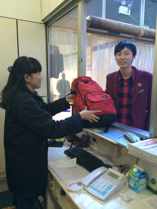 “您好,這里是客運東站服務(wù)處,您落在車上的背包我們已經(jīng)幫您找到了,請您有空的時候過來取。”服務(wù) 組組員李一斌平靜中帶點興奮地說。