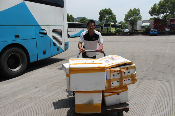 要論炎夏最辛苦的崗位,很多人自然會(huì)想到行李房的裝卸工。行包裝卸工冒著熱浪辛勤作業(yè),準(zhǔn)時(shí)地收發(fā)一批批貨物。行包房收發(fā)的貨物很多都是大件貨物,輕的幾十斤,重的二、三百斤,一批貨物裝卸下來(lái),裝卸工的衣服都能擰出水來(lái)。37度的高溫,平常人在太陽(yáng)底下站上幾分鐘都受不了,行包裝卸工卻要負(fù)重往返在車(chē)輛和行李房之間,絕大部分時(shí)間都是在露天發(fā)車(chē)區(qū)作業(yè),其辛苦可想而知。雖然被熱浪蒸得暈暈乎乎的,他們卻一點(diǎn)也不敢大意。這么熱的天氣,海鮮水產(chǎn)、鮮活貨物很容易腐敗變質(zhì),一個(gè)不小心錯(cuò)發(fā)誤發(fā)帶給客戶的可能不僅是時(shí)間精力的損耗,更會(huì)造成客戶直接的經(jīng)濟(jì)損失。所以即使再熱再辛苦,清點(diǎn)、裝卸、核對(duì),整個(gè)流程他們絲毫沒(méi)有一點(diǎn)含糊!