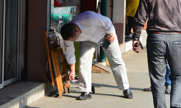 在客運(yùn)西站,葉茂董事長首先沿著下客區(qū)、站前廣場、站房西側(cè)通道、發(fā)車區(qū)和站房內(nèi)部的次序檢查了保潔情況,每到一個地方,都認(rèn)真仔細(xì)地查看。在下客區(qū)出口出租車停車區(qū),看到丟在地上還冒著煙霧的煙頭,他馬上彎腰撿起來放到邊上的垃圾桶里。在站房西側(cè)通道,他仔細(xì)查看綠化隔離帶內(nèi)的垃圾是否清理干凈。當(dāng)看到綠籬上新丟的豆?jié){杯和塑料袋時,他說:“像這種旅客隨手丟的垃圾要及時清理,還要做好引導(dǎo)工作。”