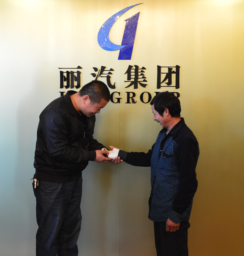11月7日上午,受傷乘客雷先生到麗水中醫(yī)院換好藥后,就直接到麗汽集團,專程來感謝奪刀救他的司機章雙林。