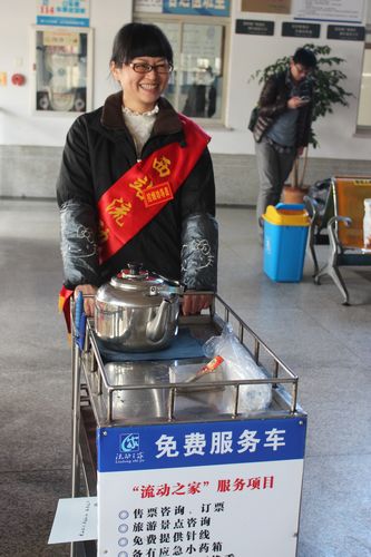 1月21日,隨著春節(jié)的日益臨近西站客流量明顯增多,西站“春運(yùn)志愿者服務(wù)隊(duì)”今天正式拉開了服務(wù)序幕。上午9:00一個(gè)個(gè)志愿者服務(wù)隊(duì)員們身披彩帶,他們有的給旅客送熱姜茶、有的幫助旅客自助購票,有的引導(dǎo)旅客安檢,有的在售票廳維持秩序,有的穿梭于候車旅客中間服務(wù),“我來幫您提行李”,“大爺我攙扶您上車”,“出門要看管好行李”,一句句貼心的溫馨提示讓旅客們感到溫暖,一次次主動(dòng)幫助給旅客們留下美好記憶,志愿服務(wù)給回家過年的旅客們鋪就了方便、安全、和諧的旅途。