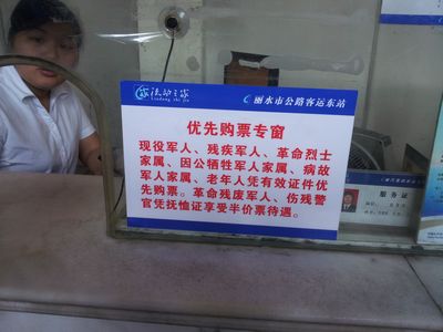 6月5日,走進(jìn)客運(yùn)東站的候車大廳,細(xì)心的旅客就會(huì)發(fā)現(xiàn),售票窗口新增了老人優(yōu)先購票的溫馨提示,以及每排候車座椅都設(shè)置了兩個(gè)老人專座。原來,這是客運(yùn)東站根據(jù)麗水市政府〔2006〕28號(hào)精神,為進(jìn)一步方便老年旅客到東站購票、候車,而在開設(shè)特殊旅客購票窗口和綠色通道的基礎(chǔ)上增設(shè)的老人購票專窗、老人專座。