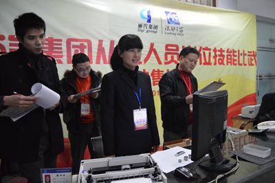 “您好!請(qǐng)問您去哪里,什么時(shí)候去,買幾張?”“青田???,票價(jià)12元?!薄巴砩?3:05分到青田海口一張,收您20元,找您8元,請(qǐng)您核對(duì)?!?br/> 12月3日晚7:00,集團(tuán)公司從業(yè)人員崗位技能比武--站售操作比賽準(zhǔn)時(shí)在集散中心接待大廳開始。此項(xiàng)操作比賽以麗水至青田、麗水至松陽(yáng)兩條線路的沿途站點(diǎn)為假想站點(diǎn),通過四位旅客循環(huán)不間斷地車票購(gòu)買,來測(cè)試參賽選手售票的標(biāo)準(zhǔn)性、服務(wù)的規(guī)范性及售票速度和差錯(cuò)率等。比賽要求每位參賽選手要完成20張車票的售票和報(bào)表的填寫工作。東、西兩站各有6名選手參加了此項(xiàng)比賽。
