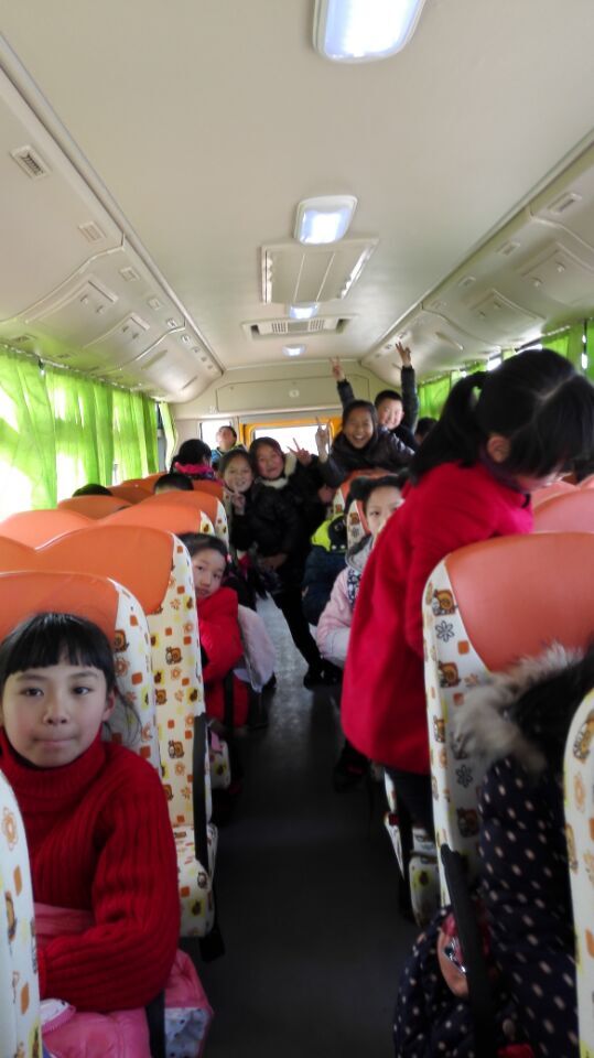7點5分,校車滿座了,孩子們的活潑、好動的天性讓整個車廂熱鬧無比。