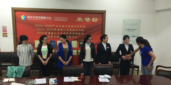 為積極爭創(chuàng)五星品質(zhì)旅行社,5月6日,集散中心散客門市部在分管領(lǐng)導(dǎo)葉學(xué)敏副經(jīng)理的組織下,展開一場理論與實踐相結(jié)合的集體培訓(xùn)。培訓(xùn)內(nèi)容主要涉及企業(yè)發(fā)展文化、熱門線路介紹、服務(wù)禮儀、服務(wù)規(guī)范等。