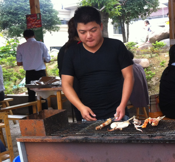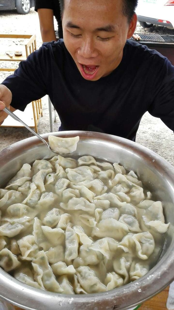5月23日,一大早大家就趕到公司集中,清點完人數(shù)后我們就往目的地出發(fā)了。到達目的地后大家就開始分工準備我們豐盛的午餐,包水餃的包水餃、燒烤的燒烤,大家伙都開始忙開了。一大群小姑娘圍著大姐學習怎么包水餃,小姑娘們就是心靈手巧,不一會功夫,肚子鼓鼓的水餃就包好了,就等著水開下鍋了。在女同胞學包水餃的同時,男同胞也在準備著美味的燒烤。胡重慶和孫秀峰是我們的專業(yè)燒烤男,炎熱的天氣,加上烤爐炭火的熏蒸,汗如雨下,但他們一直“堅守崗位”,認認真真的為大家準備美味的午餐。男同胞們不僅態(tài)度認真,技術也是一流的,燒烤不論是賣相還是味道都是超贊。很快,一大鍋翻滾的水餃起鍋了,一盤盤噴香的燒烤也擺上桌了,大家圍著桌子大快朵頤。自己包的水餃和燒烤總覺得特別的美味,一大鍋的水餃一下就被搶空了,很多女生還因為動作慢沒搶到急得直跺腳。