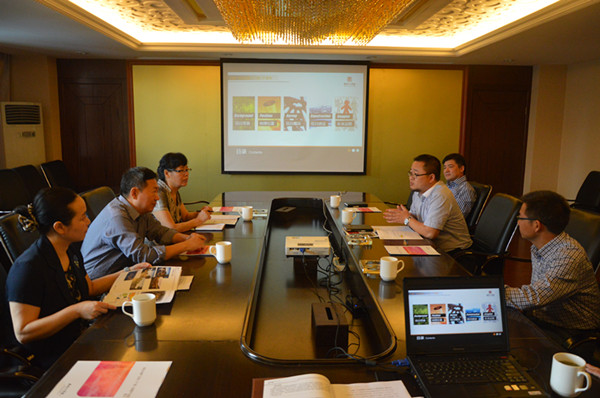 楊擁軍等省市工商(市場監(jiān)管)局領(lǐng)導(dǎo)首先聽取了董事長葉茂關(guān)于大修廠文創(chuàng)園產(chǎn)業(yè)發(fā)展情況的介紹和南明文化傳媒公司負責(zé)人馬偉文關(guān)于大修廠文創(chuàng)園建設(shè)情況的匯報。楊擁軍表示,去年就已經(jīng)知道大修廠文創(chuàng)園的事情了,但當時還是初步設(shè)想。到現(xiàn)在建筑整修已經(jīng)完成,再過三個月又要準備開園了,進度那么快,說明麗汽集團的領(lǐng)導(dǎo)層很重視,也說明麗水人的創(chuàng)業(yè)創(chuàng)新的熱情絲毫不輸給經(jīng)濟發(fā)達地區(qū)。希望麗汽集團一直抓緊抓好園區(qū)建設(shè)進度,力爭10月份如期開園,也爭取全省廣告創(chuàng)意園區(qū)建設(shè)現(xiàn)場會能在大修廠文創(chuàng)園召開。