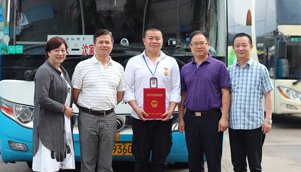 6月5日上午,麗水市總工會(huì)領(lǐng)導(dǎo)專(zhuān)程到麗汽集團(tuán)客長(zhǎng)運(yùn)分公司,給“最美司機(jī)”章雙林送來(lái)麗水市勞動(dòng)模范獎(jiǎng)?wù)潞妥C書(shū)。