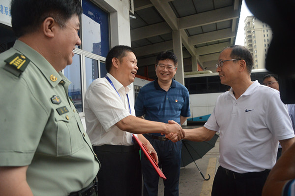 今天下午16時(shí)左右,史書記冒著小雨來(lái)到東站,一下車就徑直走到吳斌駕駛的車子旁。看到從車上下來(lái)的吳斌,史書記握著他的雙手,高興地說(shuō):“我代表市委來(lái)看望你!”