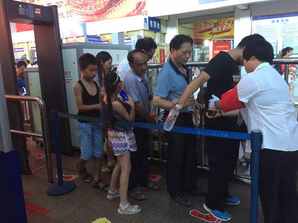活動第一天,佩戴志愿者紅袖章的同志已經(jīng)穿梭在車站的各個角落,熱情的為來往旅客服務(wù)。在售票大廳,為旅客介紹客車的運行班次,引導(dǎo)幫助旅客使用自助售票機購票;在服務(wù)總臺,為未帶身份證的旅客辦理信息登記工作;在安檢口,積極督導(dǎo)旅客進(jìn)行人物分離安檢,維持排隊秩序;在候車大廳,為旅客提供免費防暑涼茶,宣傳客車服務(wù);在長途班車檢票口,幫助不熟悉實名檢票的旅客順利檢票通過。