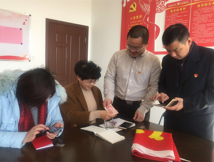 在主題黨日活動的現(xiàn)場,還進行了繳納黨費的儀式。