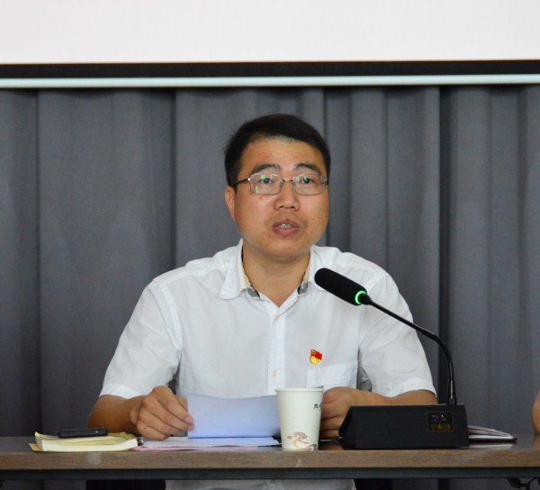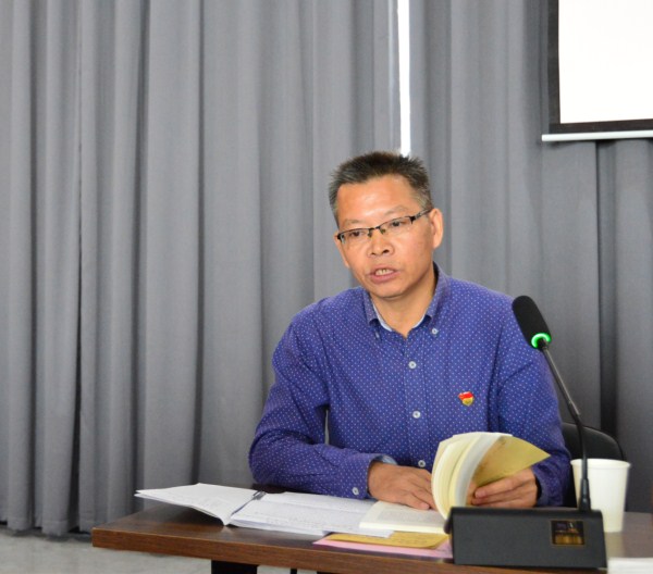 薛和有副書記結(jié)合主題教育中學(xué)習(xí)“兩書一章”的收獲、感悟和思考,圍繞“四個意識”“四個自信”“兩個維護(hù)”要求,以“講政治、懂規(guī)矩、守紀(jì)律、勇?lián)?dāng)”為題授課。