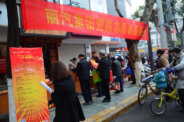 黨員們在中山街上頂著寒風(fēng),冒著嚴(yán)寒,不斷為市民們送福字,寫對聯(lián),送對聯(lián),把暖暖的祝福送給市民。據(jù)統(tǒng)計(jì),集團(tuán)公司黨員服務(wù)一條街,送出“?!弊?500余張,送出對聯(lián)200余副,發(fā)放班車時(shí)刻表、旅游信息表等1000余張。
