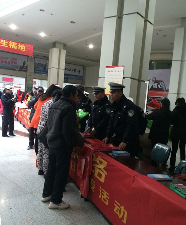 本次活動由麗水市公安局交警支隊、麗水市公路管理局、金麗溫高速、高速交警麗水支隊、麗水市道路運輸管理局、麗汽集團(tuán)等單位參加,并在西站現(xiàn)場設(shè)立了春運服務(wù)點。活動現(xiàn)場熱鬧異常,咨詢的旅客也絡(luò)繹不絕,活動單位向廣大旅客們發(fā)放了《珍愛生命、安全出行、拒絕黑車》、《文明交通安全宣傳手冊》等交通安全書籍和宣傳冊頁,還為旅客們送上了年味十足的福字、對聯(lián)和使用性強的浙江省高速公路行車指南地圖作為新年小禮物,受到了廣大旅客的歡迎。