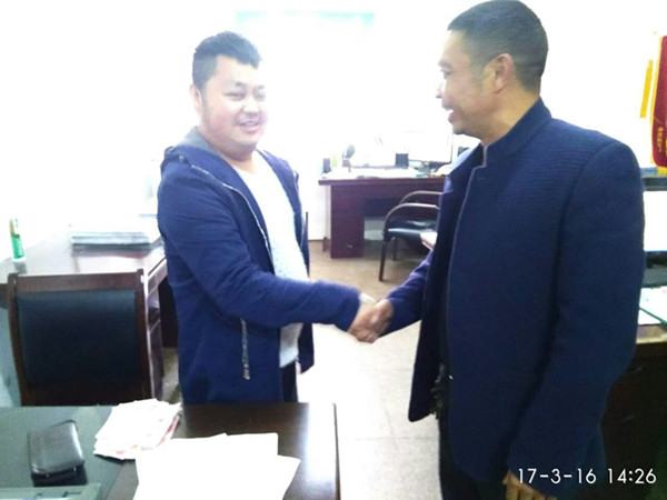 肖先生(左)握住吳師傅的手連聲說感謝