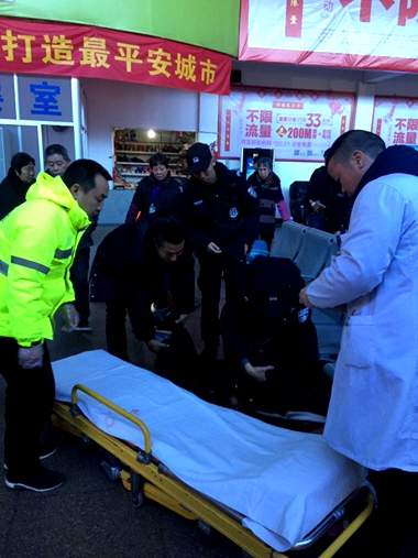 16:20,警察和救護(hù)人員都相繼趕到候車室,醫(yī)生對生病旅客作了初步診斷,警察也在旅客身上找到了身份證,想方設(shè)法和他家人取得了聯(lián)系。余林峰等人協(xié)助醫(yī)生將旅客抬上了擔(dān)架,并一直護(hù)送到救護(hù)車上。