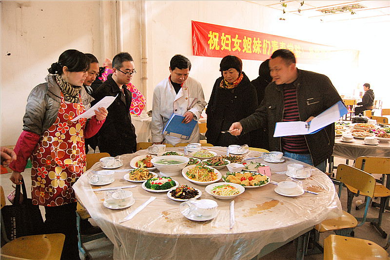 爆炒豬肝、豆腐丸子、蒜蓉大蝦……一道道誘人的家常菜端出廚房,可以看出大家伙對今天的比賽還是下了一番功夫了。由山海實訓(xùn)基地的烹飪老師組成的評委組綜合對各組燒制的菜肴的色、香、味、型,進(jìn)行打分,并對每一道菜品進(jìn)行了點評??炜头止?、物流公司聯(lián)隊和技術(shù)學(xué)校、南明賓館聯(lián)隊分獲一、二等獎。