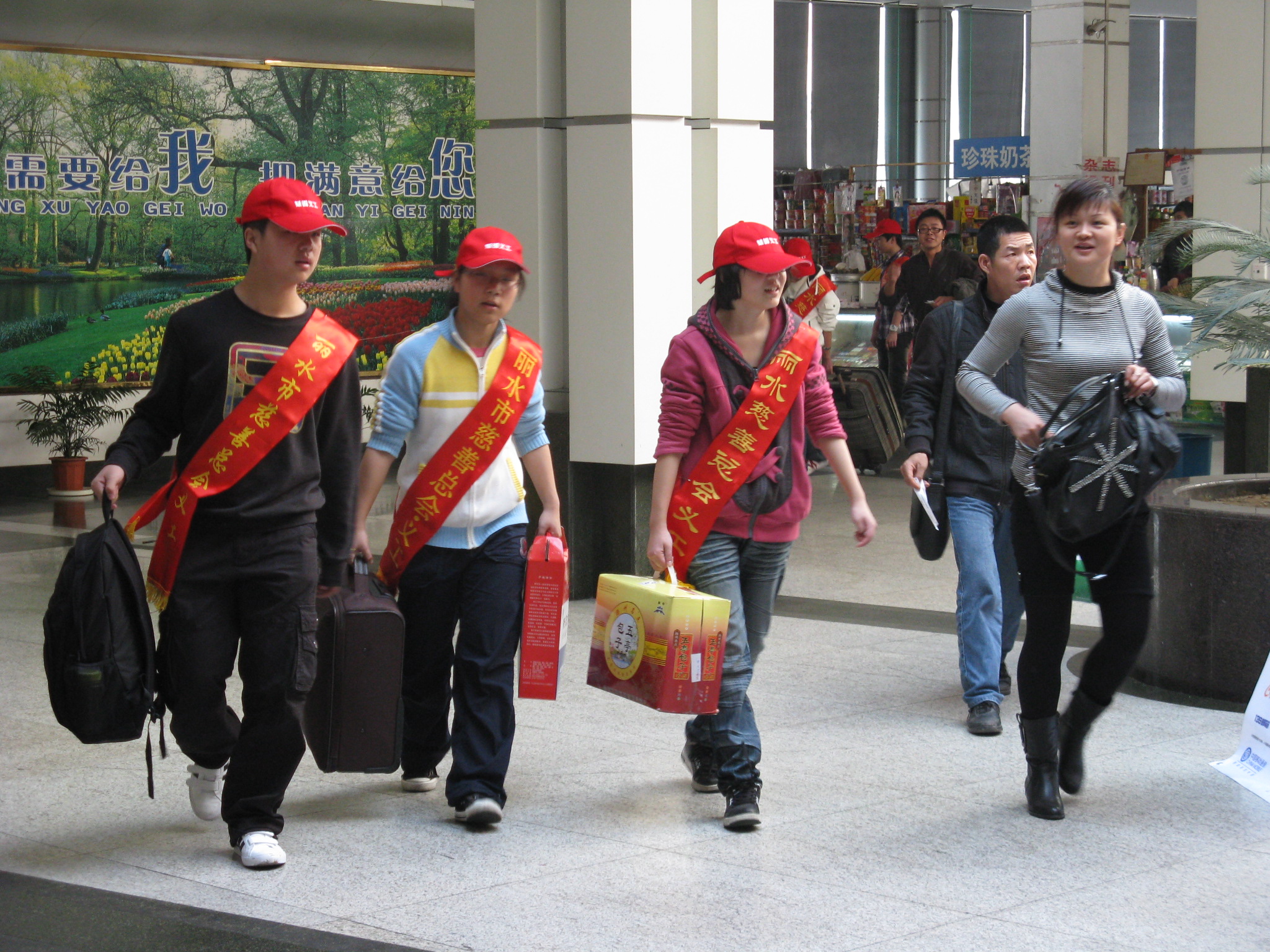 2月10日早,麗水客運(yùn)東站、客運(yùn)西站站場(chǎng)出現(xiàn)了一大批“小紅帽”,他們穿梭于售票大廳、候車室、發(fā)車區(qū)、下客區(qū)等處,有的熱情幫助旅客提行李;有的為在一旁候車的旅客送上熱騰騰的開水;有的抱小孩扶老人上車;還有的在危檢儀旁勸導(dǎo)旅客將行李進(jìn)行危檢。一個(gè)個(gè)忙得不亦樂乎!成了春運(yùn)現(xiàn)場(chǎng)的一道亮麗風(fēng)景。 這些“小紅帽”來(lái)自麗水市慈善總會(huì),他們當(dāng)中有義工,有受慈善總會(huì)捐助的學(xué)生,一共20余人。一個(gè)個(gè)都頭戴小紅帽,身披市慈善總會(huì)的授帶。特意來(lái)到客運(yùn)東、西站,為南來(lái)北往的旅客送上熱情的幫助。他們的到來(lái),得到旅客的贊許。