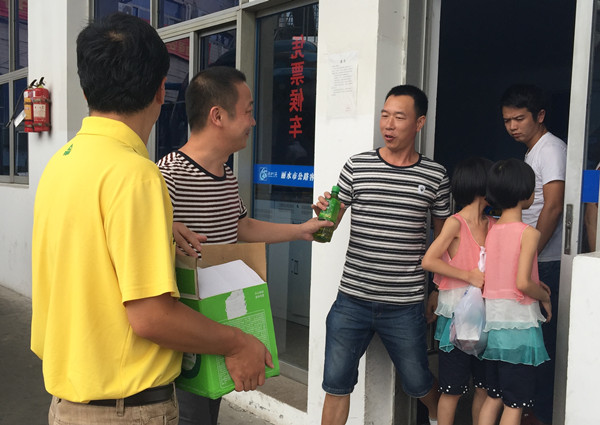 梁巍經理為即將發(fā)車的駕駛員送去清涼。