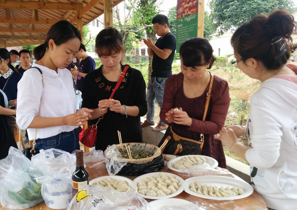 5月23日,一大早大家就趕到公司集中,清點完人數(shù)后我們就往目的地出發(fā)了。到達目的地后大家就開始分工準備我們豐盛的午餐,包水餃的包水餃、燒烤的燒烤,大家伙都開始忙開了。一大群小姑娘圍著大姐學習怎么包水餃,小姑娘們就是心靈手巧,不一會功夫,肚子鼓鼓的水餃就包好了,就等著水開下鍋了。在女同胞學包水餃的同時,男同胞也在準備著美味的燒烤。胡重慶和孫秀峰是我們的專業(yè)燒烤男,炎熱的天氣,加上烤爐炭火的熏蒸,汗如雨下,但他們一直“堅守崗位”,認認真真的為大家準備美味的午餐。男同胞們不僅態(tài)度認真,技術也是一流的,燒烤不論是賣相還是味道都是超贊。很快,一大鍋翻滾的水餃起鍋了,一盤盤噴香的燒烤也擺上桌了,大家圍著桌子大快朵頤。自己包的水餃和燒烤總覺得特別的美味,一大鍋的水餃一下就被搶空了,很多女生還因為動作慢沒搶到急得直跺腳。