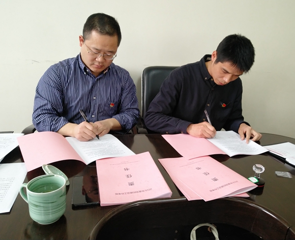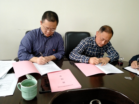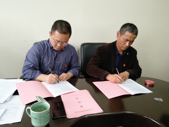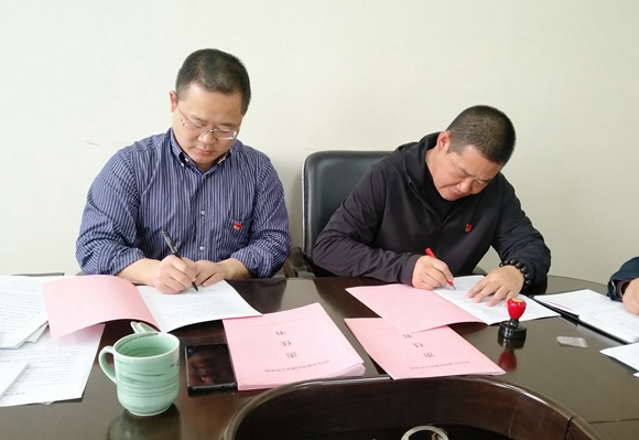 圖為集團(tuán)公司黨委與黨辦及各黨支部簽訂《黨的建設(shè)工作考核責(zé)任書(shū)》