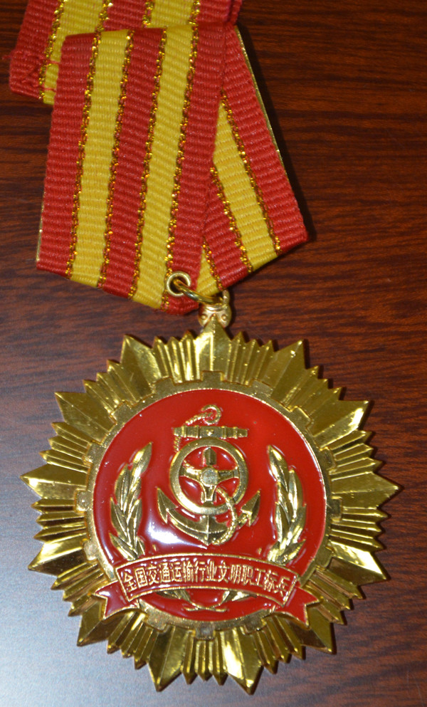 吳斌(左)榮獲全國交通運(yùn)輸系統(tǒng)勞動模范、全國交通運(yùn)輸行業(yè)文明職工標(biāo)兵稱號
